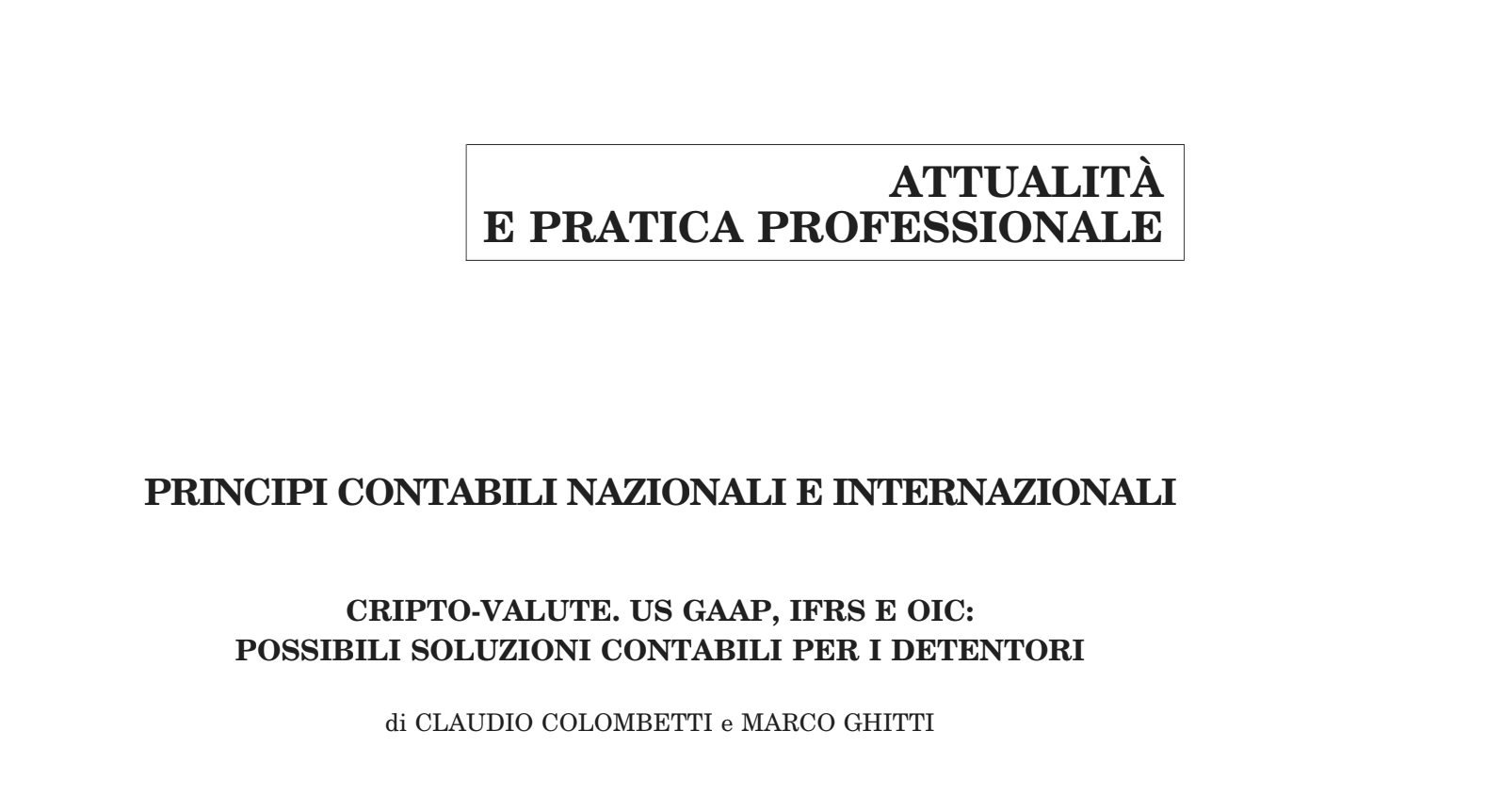 Sull’ultimo numero della Rivista dei Dottori Commercialisti è stato pubblicato l’articolo “Cripto-Valute, US GAAP, IFRS e OIC: possibili soluzioni contabili per i detentori” redatto da Claudio Colombetti Consulente Junior e Marco Ghitti, Socio Fondatore di Studio Ghitti & Associati.